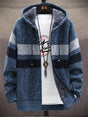 Men’s Color Block Faux Fur Lining Zip Front Hooded Drawstring Hood Sweatshirt Jacket