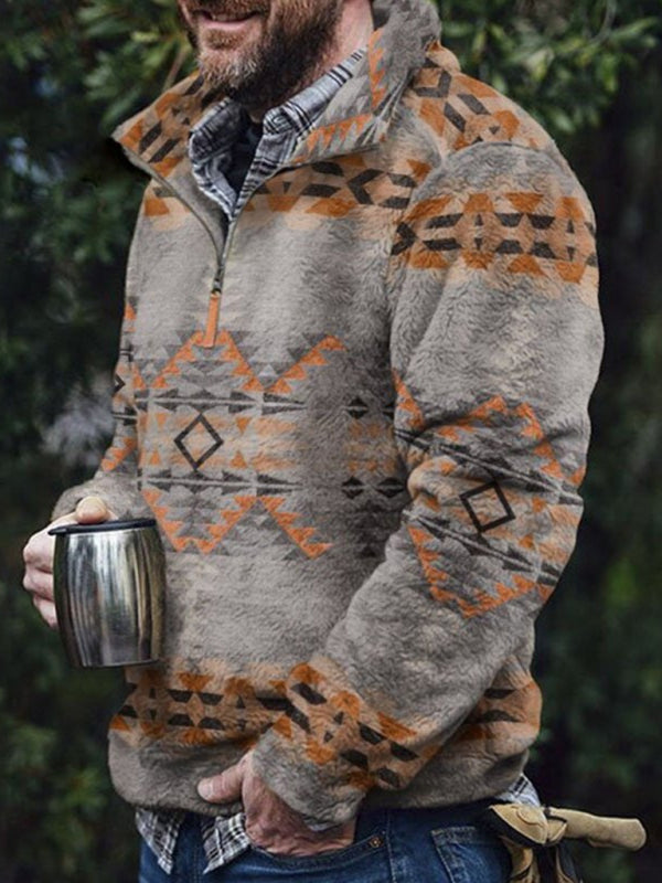 Men’s Faux Fur Quarter Zip Up Sweatshirt - Print 1 / S está agotado y se enviará tan pronto como vuelva a estar disponible.