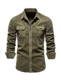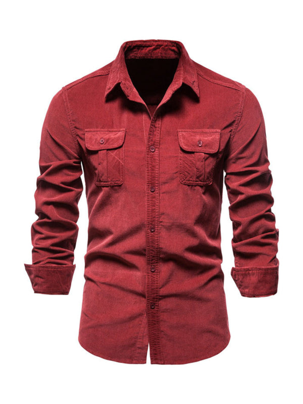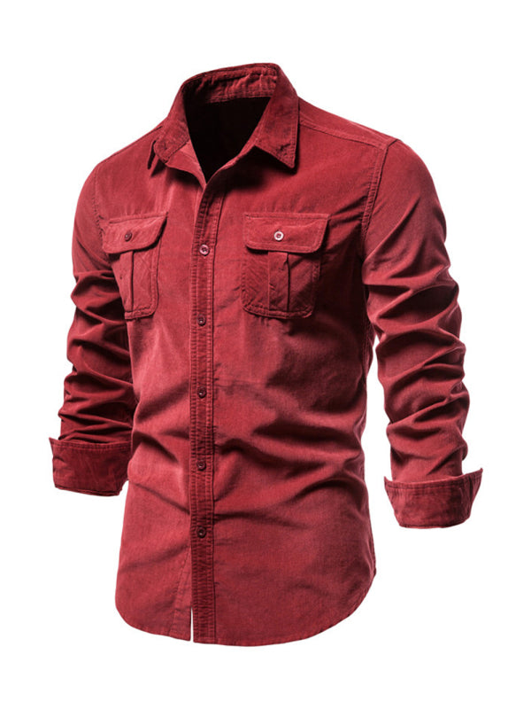 Men's corduroy slim-fit casual long-sleeve shirt - Green / M está agotado y se enviará tan pronto como vuelva a estar disponible.