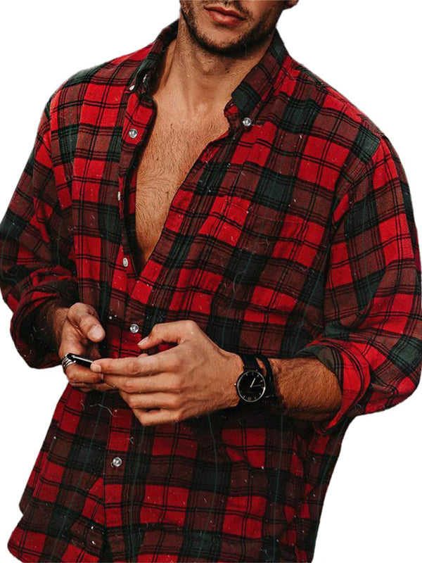 Men's Plaid Print Button Front Shirt - Yellow / M está agotado y se enviará tan pronto como vuelva a estar disponible.