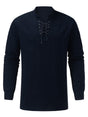 Men's Solid Color Long Sleeve Lace-up Rib Sweater - Navy Blue / S está agotado y se enviará tan pronto como vuelva a estar disponible.