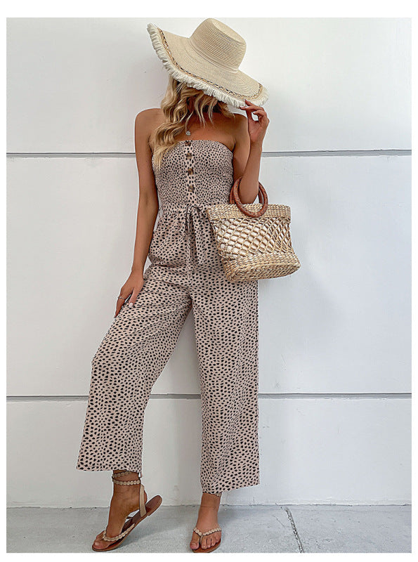 New European and American women's holiday leopard print one-piece jumpsuit - Black / S está agotado y se enviará tan pronto como vuelva a estar disponible.