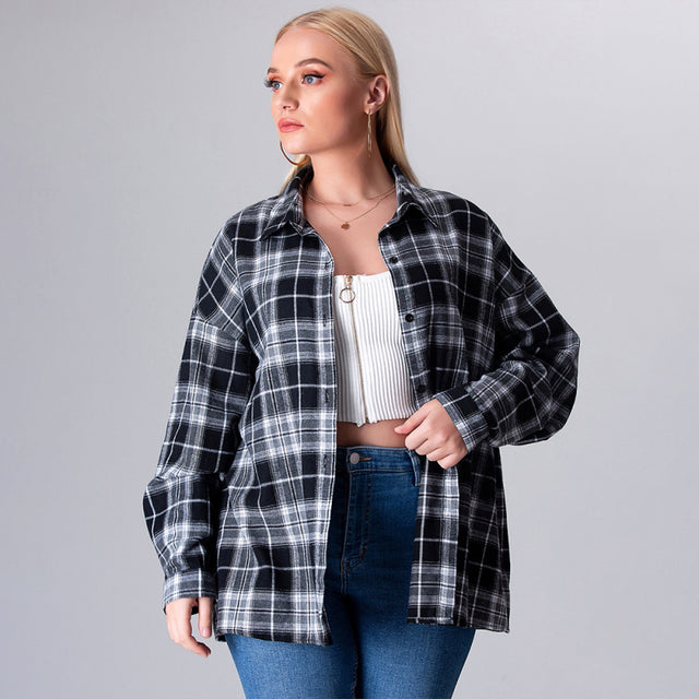 Plus size women's loose plaid shirt - Black / L está agotado y se enviará tan pronto como vuelva a estar disponible.