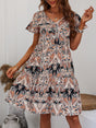 Printed V-Neck Tiered Dress - Carnation Pink / S está agotado y se enviará tan pronto como vuelva a estar disponible.
