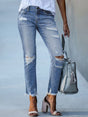 Raw edge ripped slim fit slim jeans women's straight leg cropped pants - Blue / S está agotado y se enviará tan pronto como vuelva a estar disponible.