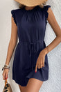 Ruffled Tie-Waist Keyhole Dress - Dark Navy / S está agotado y se enviará tan pronto como vuelva a estar disponible.