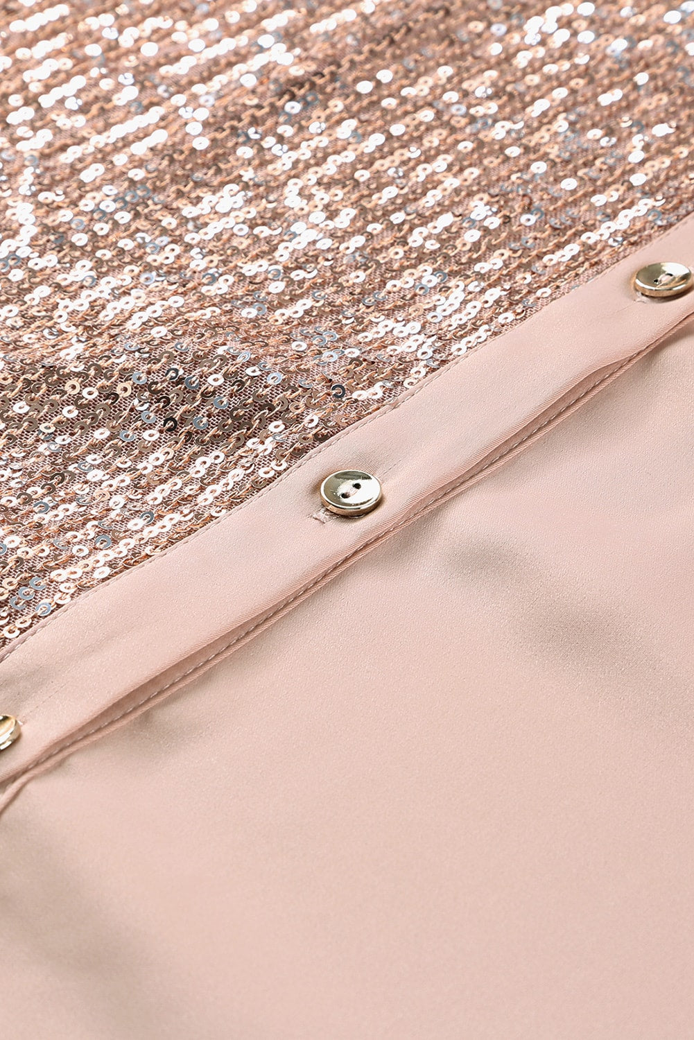 Sequin Button Front High-Low Shirt Dress - Peach / S está agotado y se enviará tan pronto como vuelva a estar disponible.
