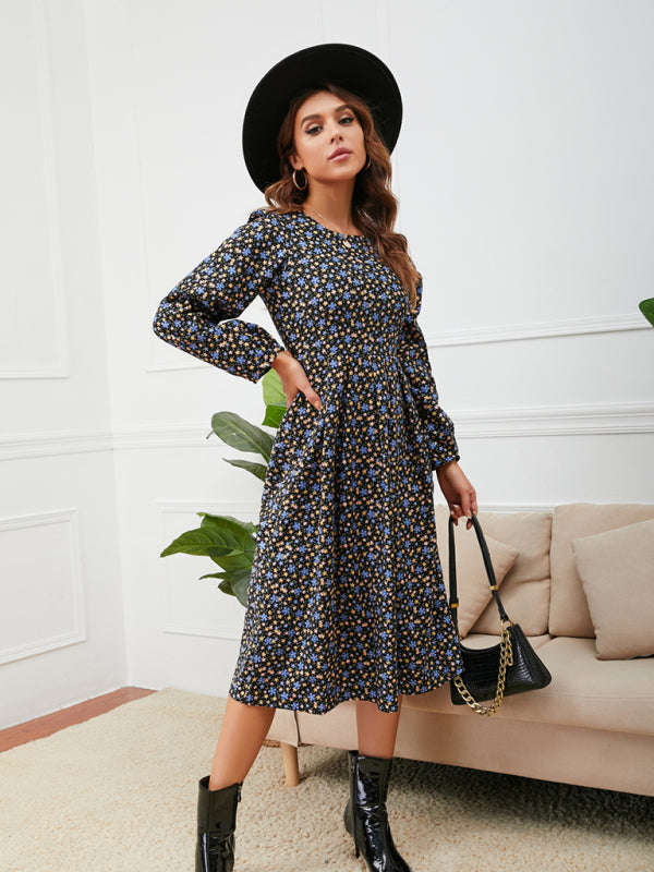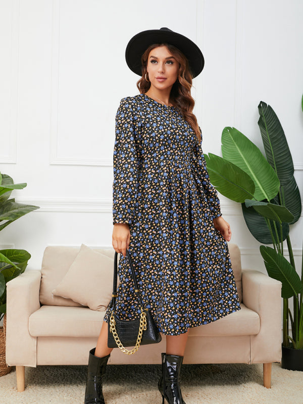 Women’s Everyday Floral Print Longsleeve Dress - Black / S está agotado y se enviará tan pronto como vuelva a estar disponible.