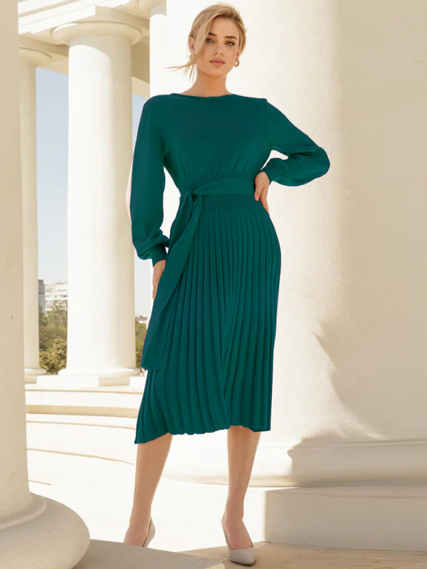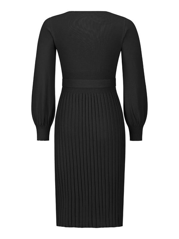 Women’s Mid Length Pleated Long Sleeve Dress - Black / S está agotado y se enviará tan pronto como vuelva a estar disponible.