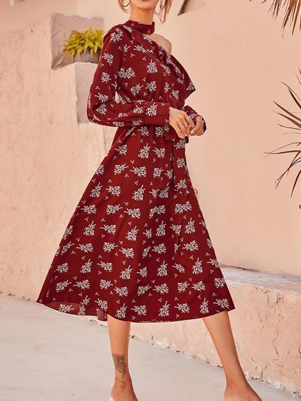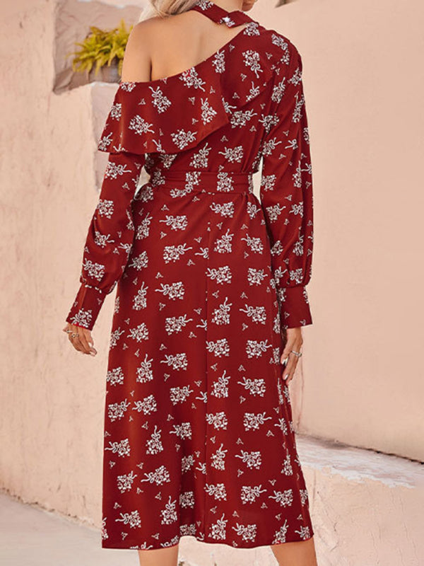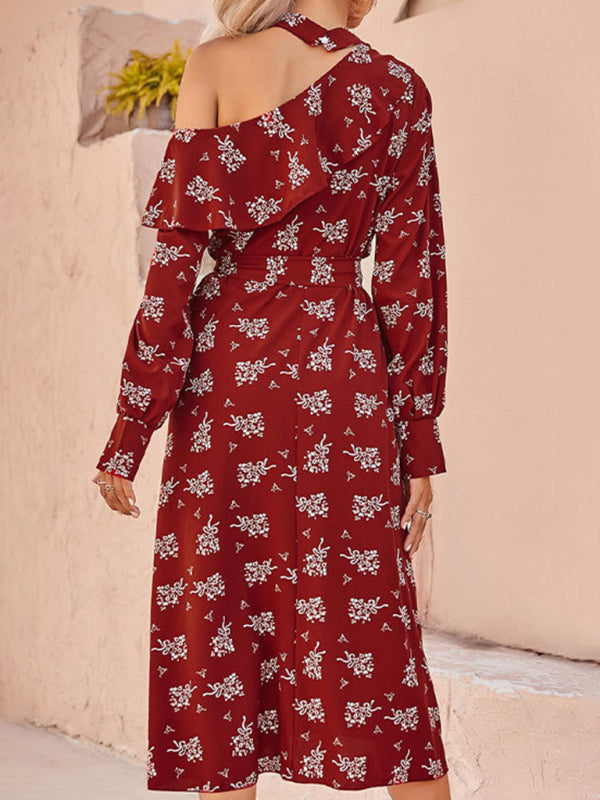 Women's Floral Off Shoulder Bohemia Red Maxi Dress