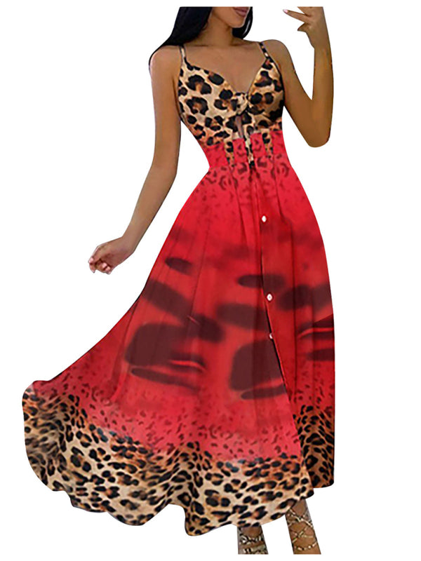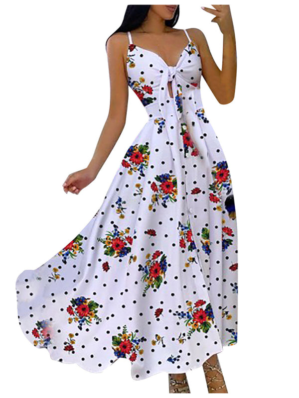 Women's Lace Up Full Floral Sexy Halter Dress Long