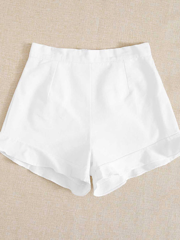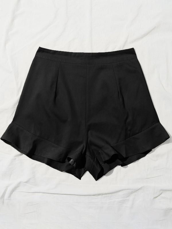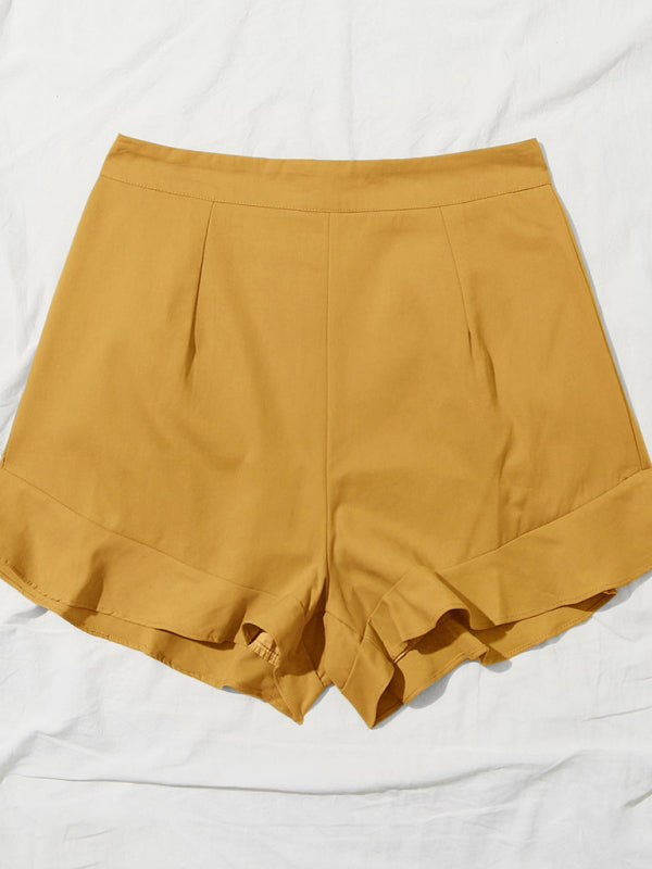 Women's lotus leaf edge loose casual shorts - Amber yellow / XS está agotado y se enviará tan pronto como vuelva a estar disponible.