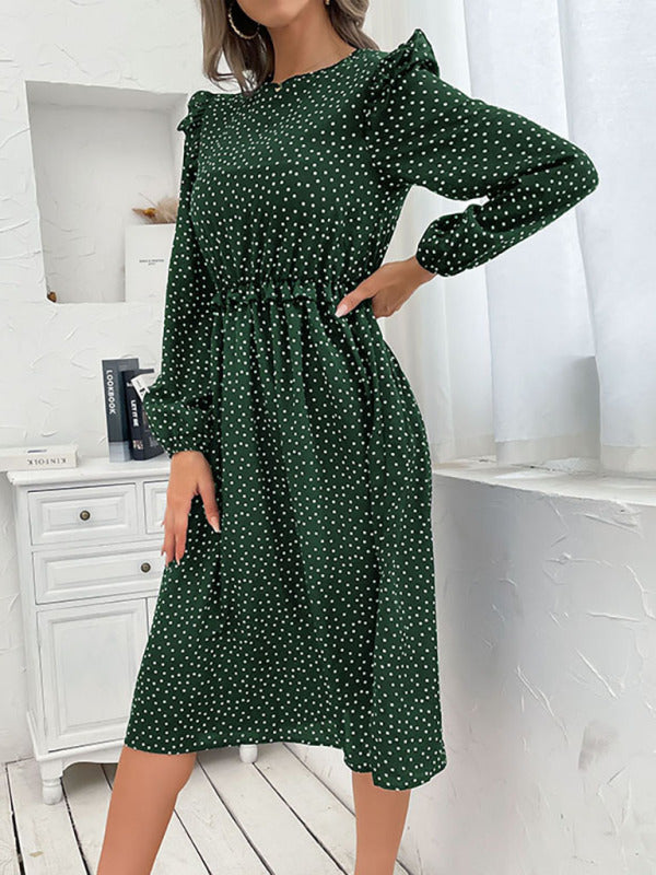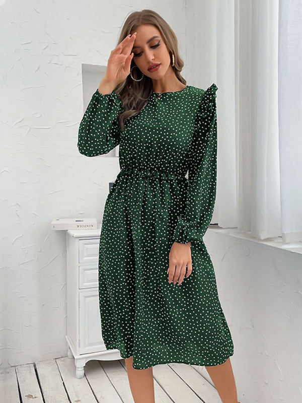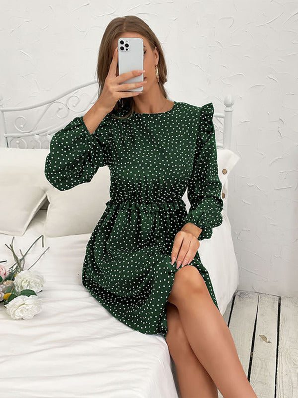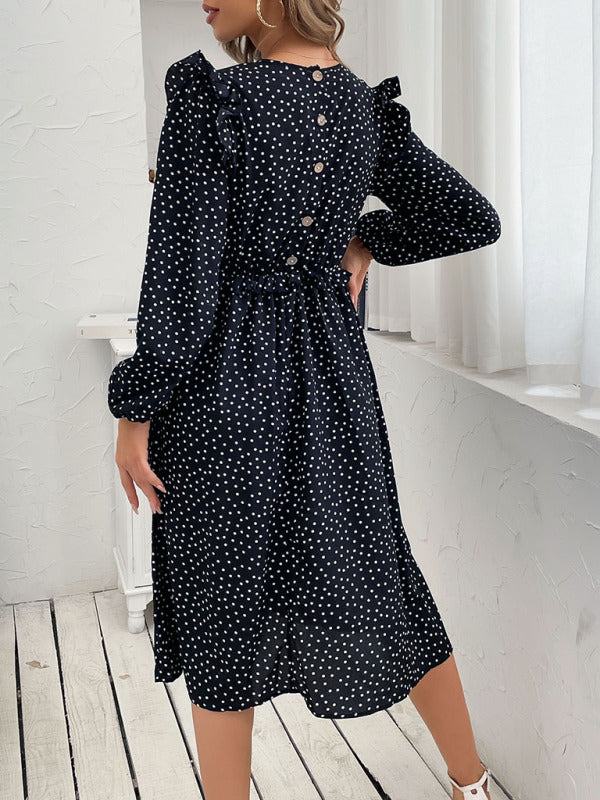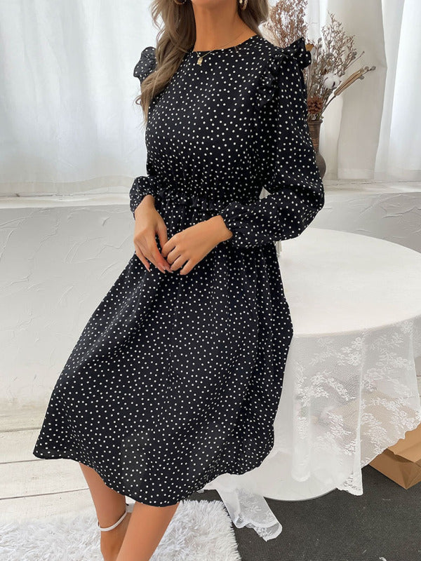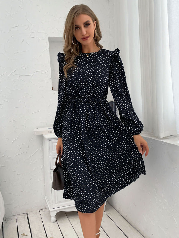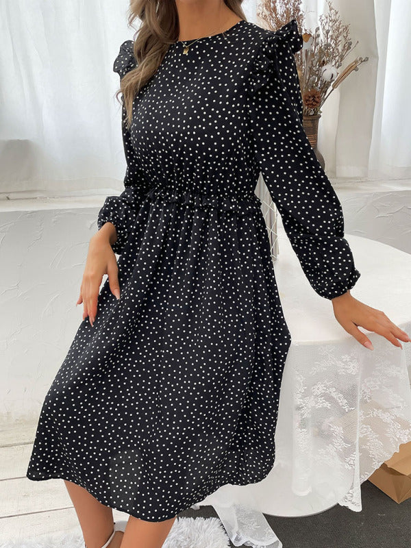 Women's ruffle polka dot long sleeve dress - Coffe / S está agotado y se enviará tan pronto como vuelva a estar disponible.