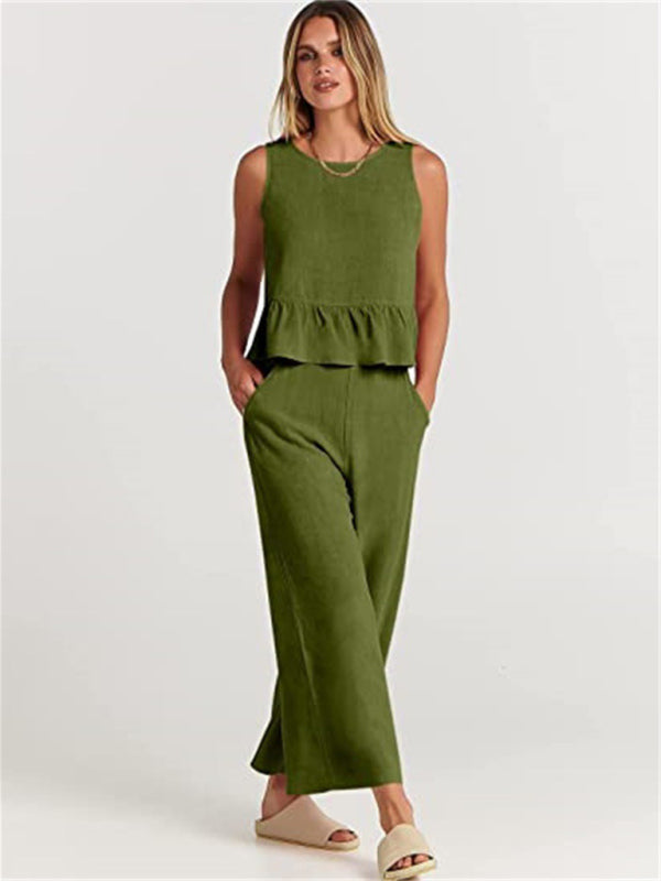 Women's Ruffle Sleeveless Top With Matching Wide-leg Pants