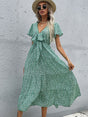 Women's Short Sleeve Green Print V-Neck Dress - Green / S está agotado y se enviará tan pronto como vuelva a estar disponible.