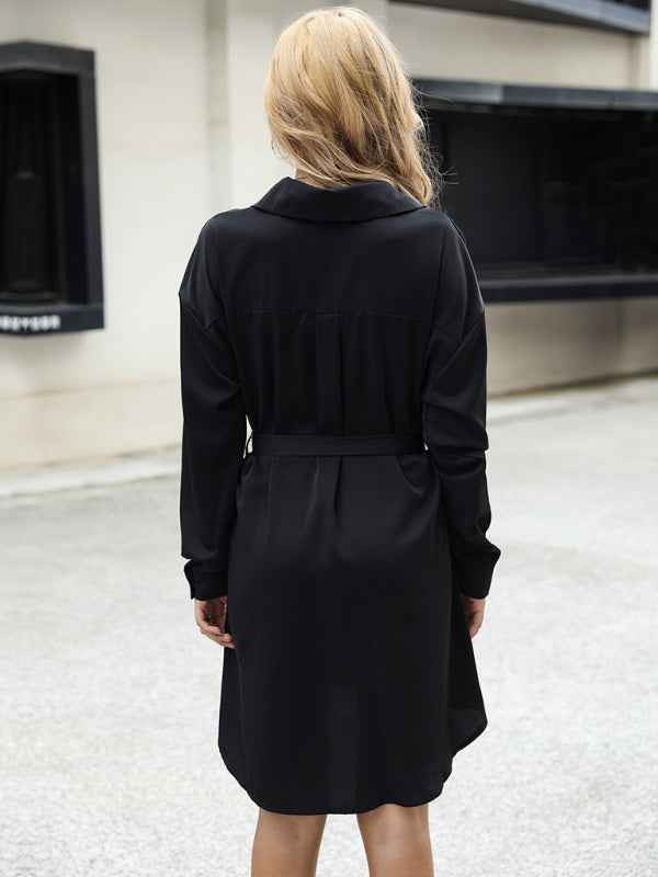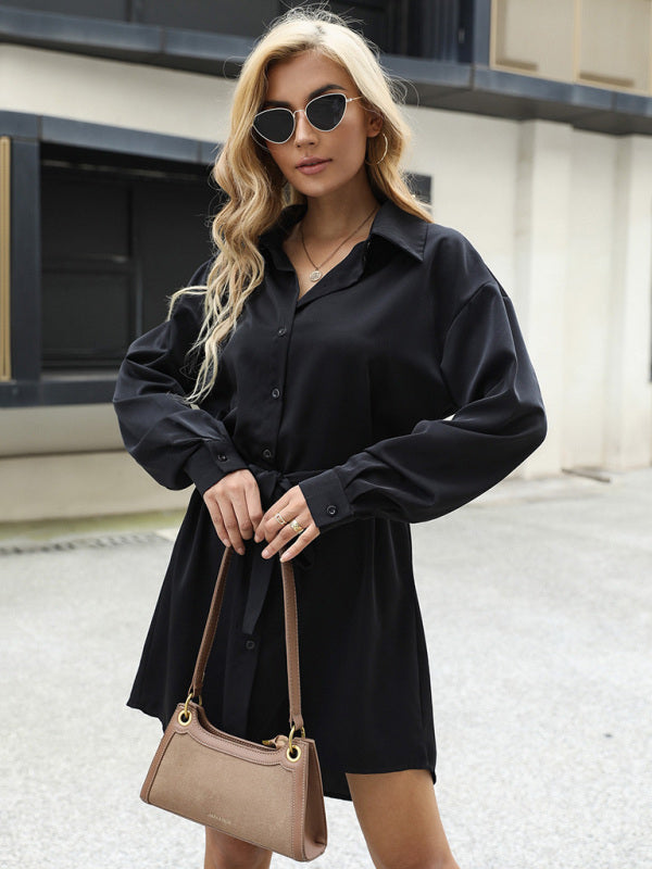 This stylish sleek dress is ready to be worn to any occasion. With silky soft fabric for extra comfort and a waist tie to add figure, this mini dress is perfect for a flattering fall fit.