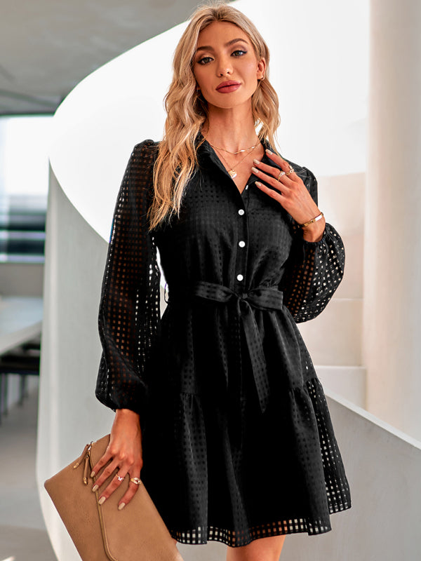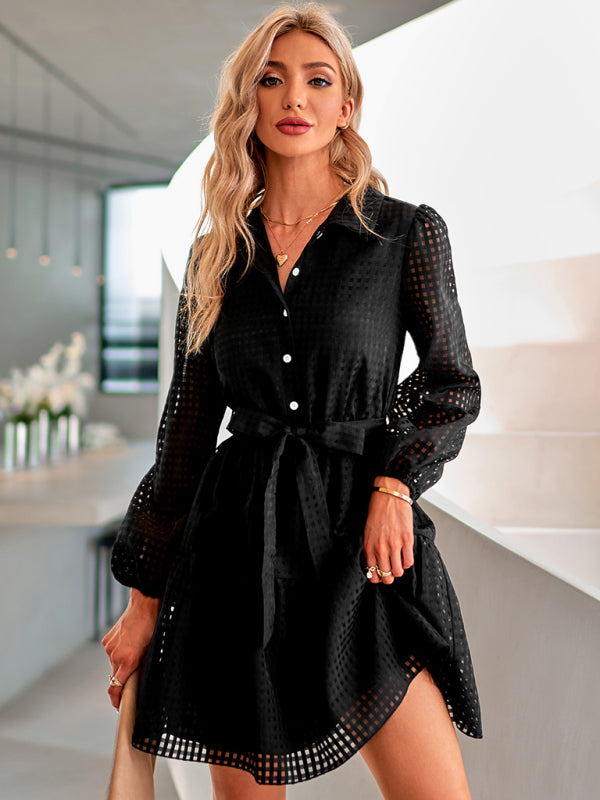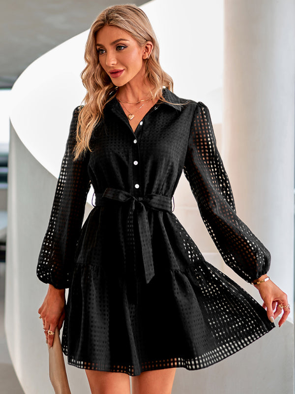 Women's single breasted slim fit solid Plaid Dress - Black / S está agotado y se enviará tan pronto como vuelva a estar disponible.