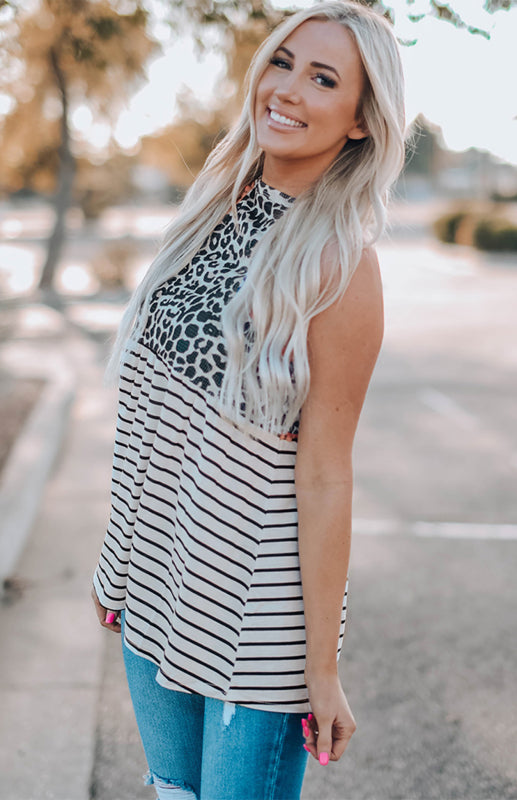 Women's Sleeveless Striped and Leopard Tank Top - leopard color print / S está agotado y se enviará tan pronto como vuelva a estar disponible.