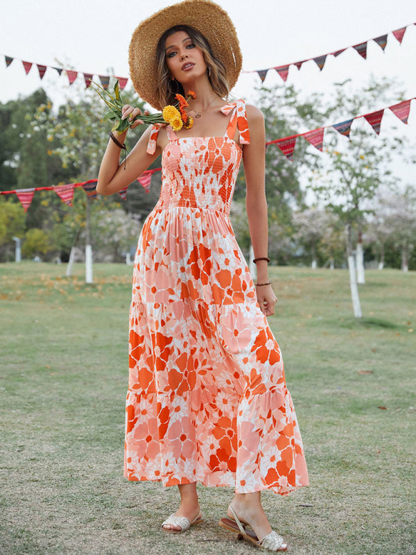 Women's Sling Floral Resort Long Dress - Orange / S está agotado y se enviará tan pronto como vuelva a estar disponible.