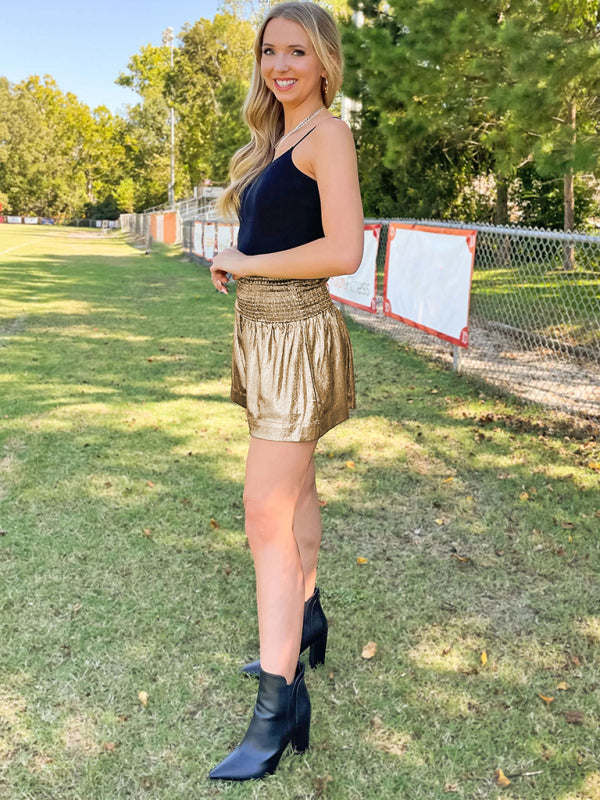 Women's Smocked Pull-on Glitter Shorts - Khaki / S está agotado y se enviará tan pronto como vuelva a estar disponible.