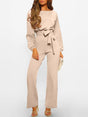Women's Solid Color Crewneck Long Puff Sleeve Waist Tie Jumpsuit Pants - khaki / S está agotado y se enviará tan pronto como vuelva a estar disponible.