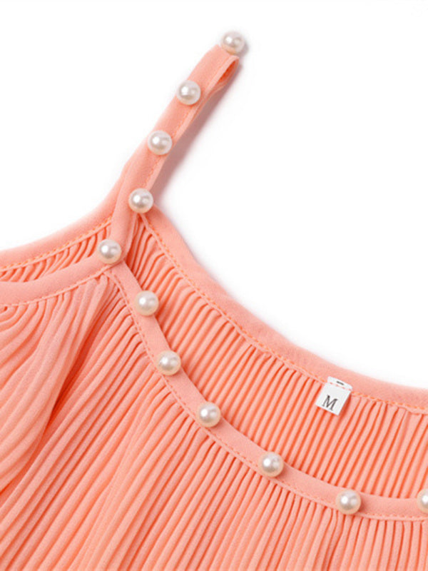 Women's Solid Color Imitation Pearl-embellished Camisole