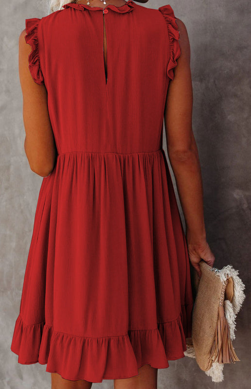 Women's Solid Color Ruffled Waist Dress - Sapphire blue / S está agotado y se enviará tan pronto como vuelva a estar disponible.