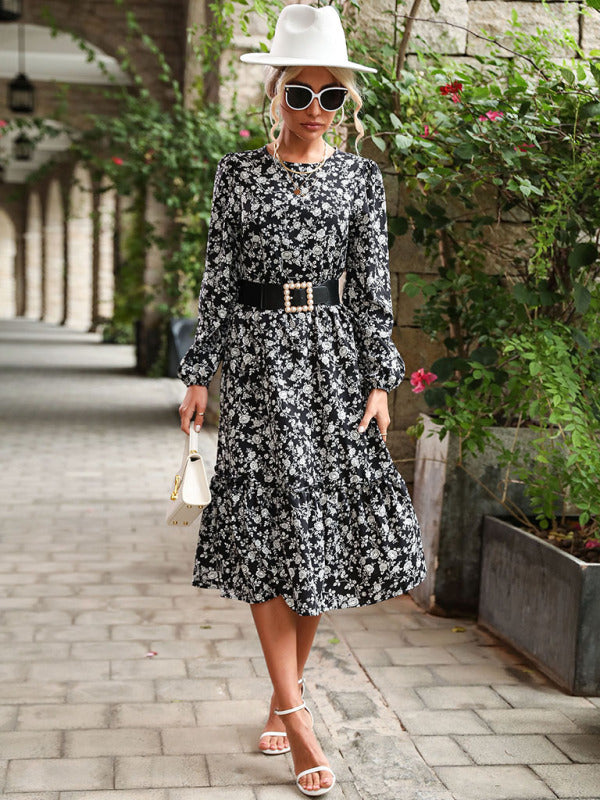 Women's temperament long-sleeved black floral dresses - Black / S está agotado y se enviará tan pronto como vuelva a estar disponible.