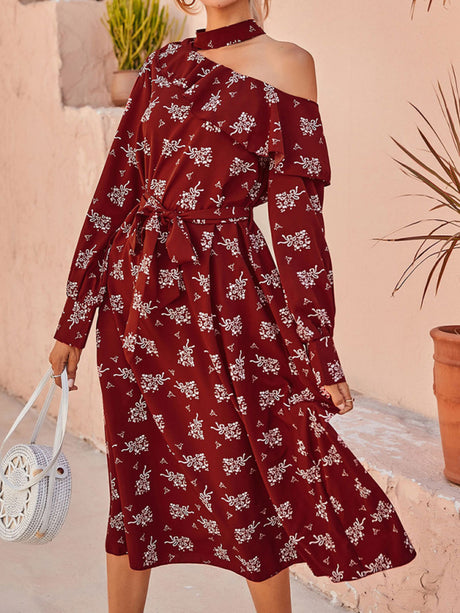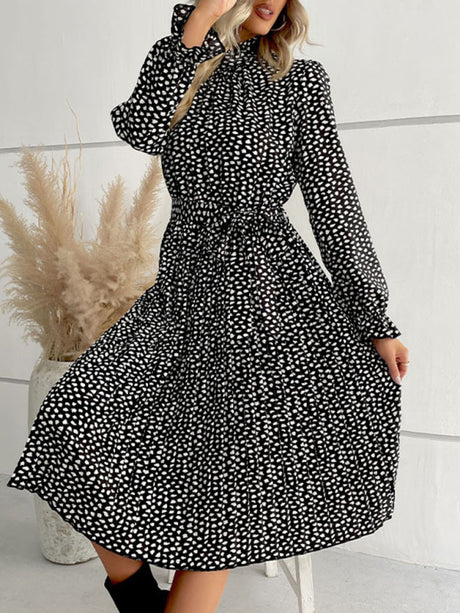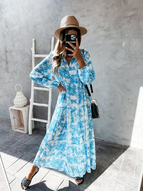 $29.20 USDPrecio unitario /AgotadoPrinted High Waist Lace-Up Vacation Style Long Sleeve Fashion Dress