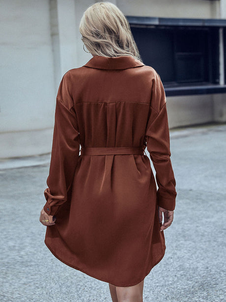 $26.80 USDPrecio unitario /AgotadoLong Sleeve Lace Up High Waist V-Neck Style Commuter Pullover Dress