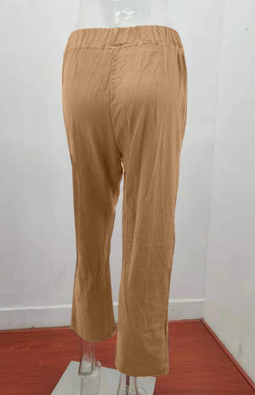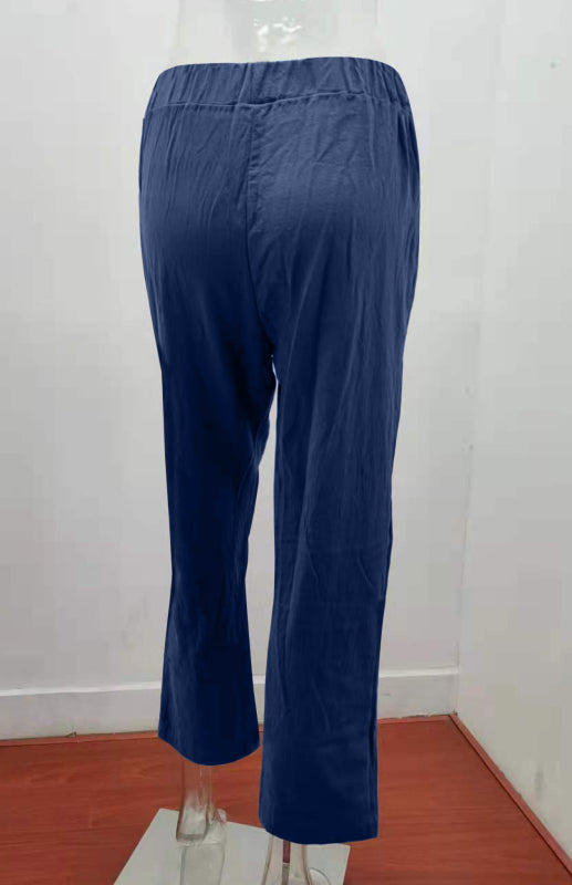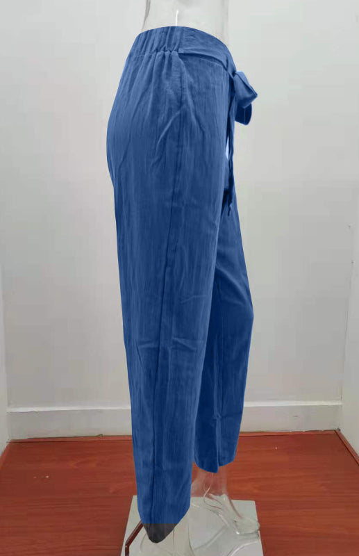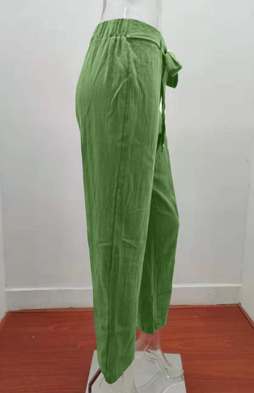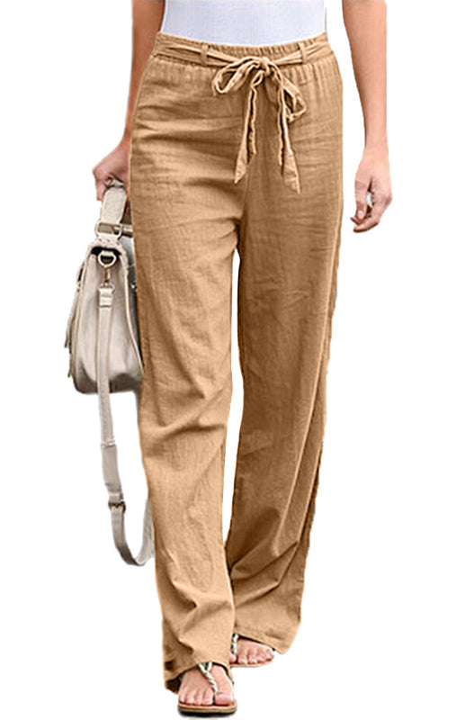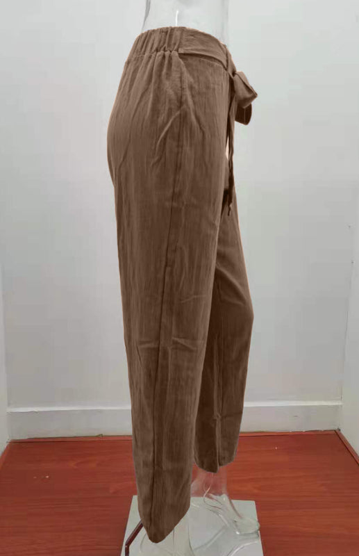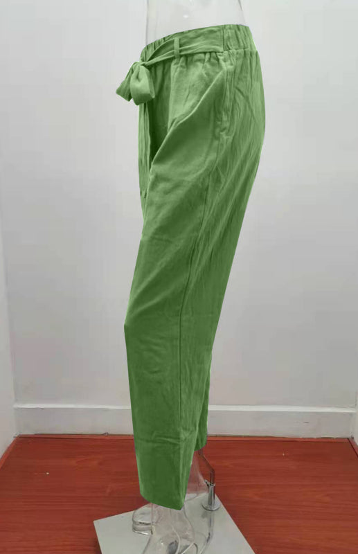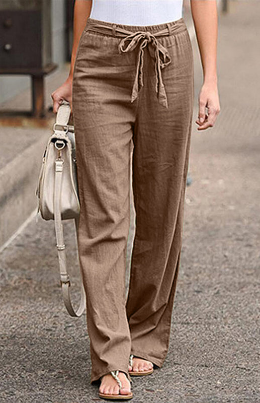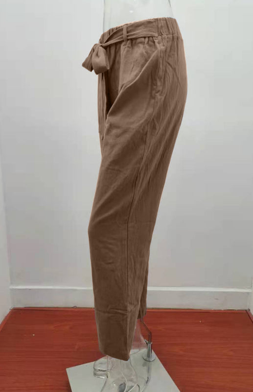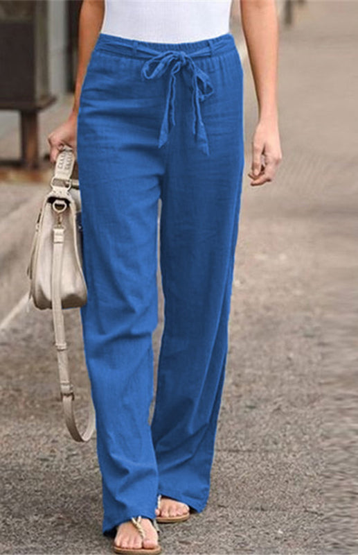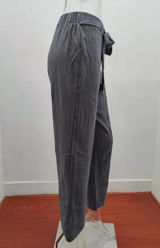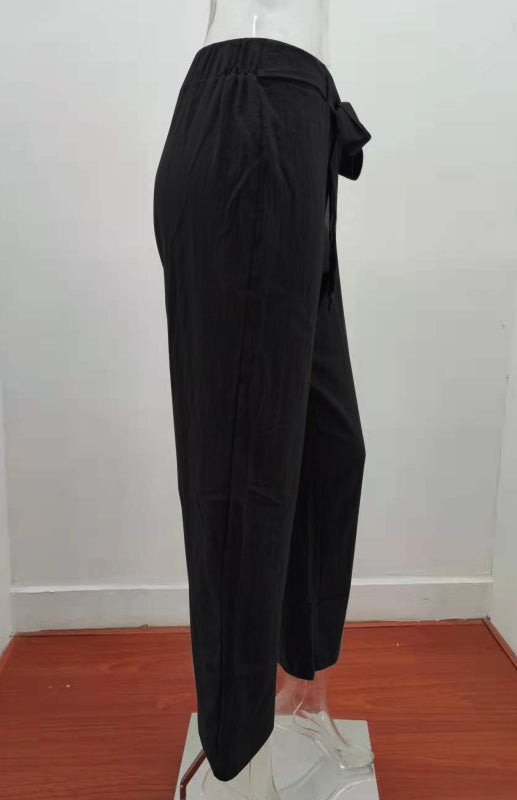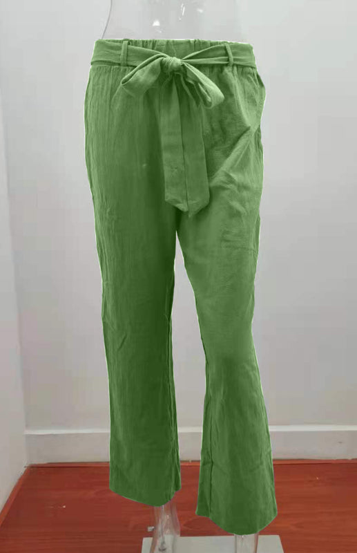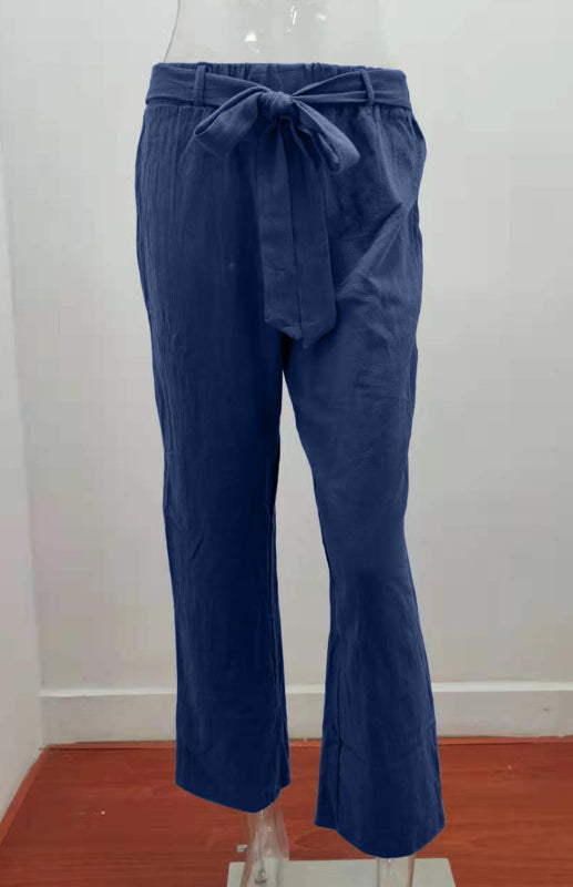 Women's European And American Elastic Waist Solid Color Belt Loose Trousers