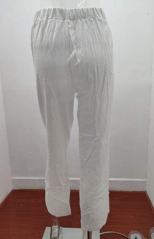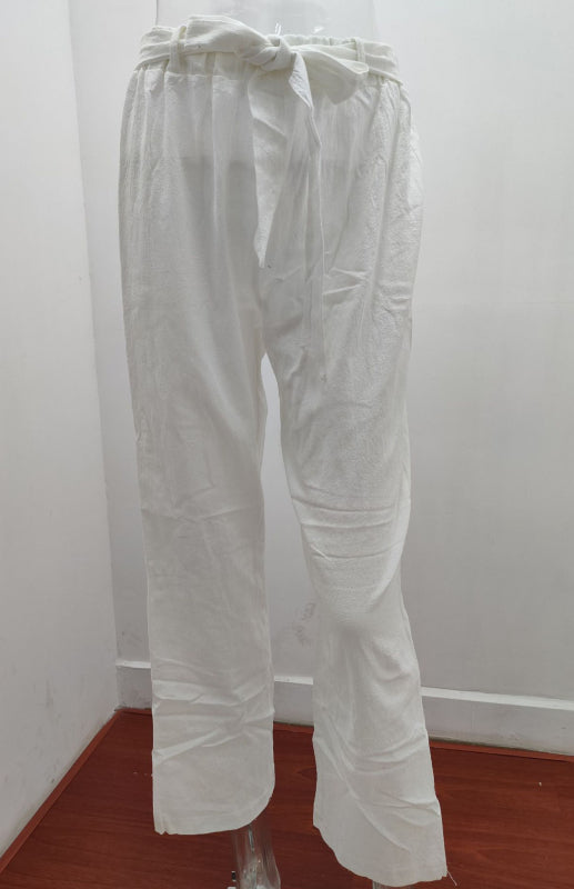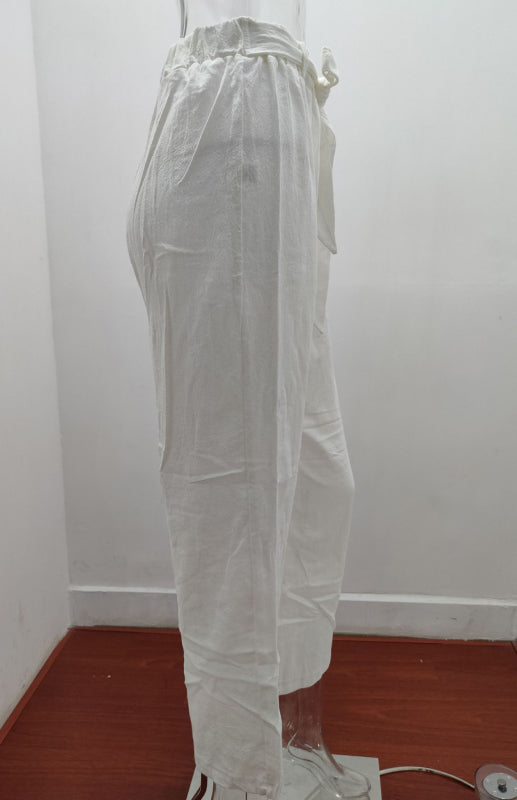 Women's European And American Elastic Waist Solid Color Belt Loose Trousers - White / S está agotado y se enviará tan pronto como vuelva a estar disponible.