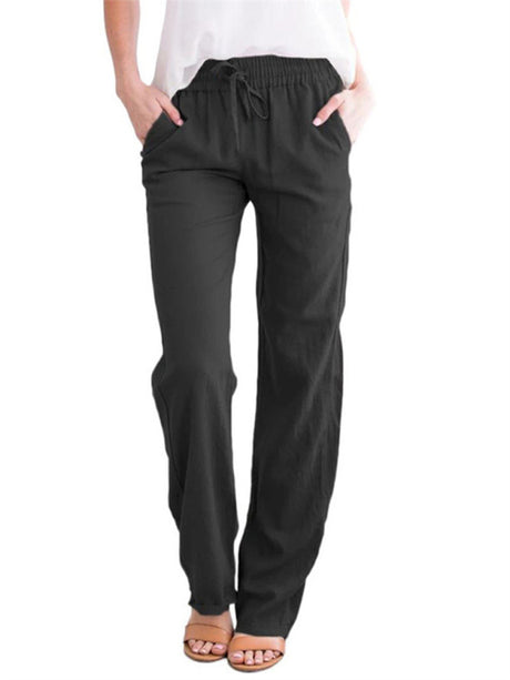 +4$29.46 USDPrecio unitario /AgotadoWomen's Solid Color Cotton Linen Drawstring Loose Casual Wide Leg Trousers