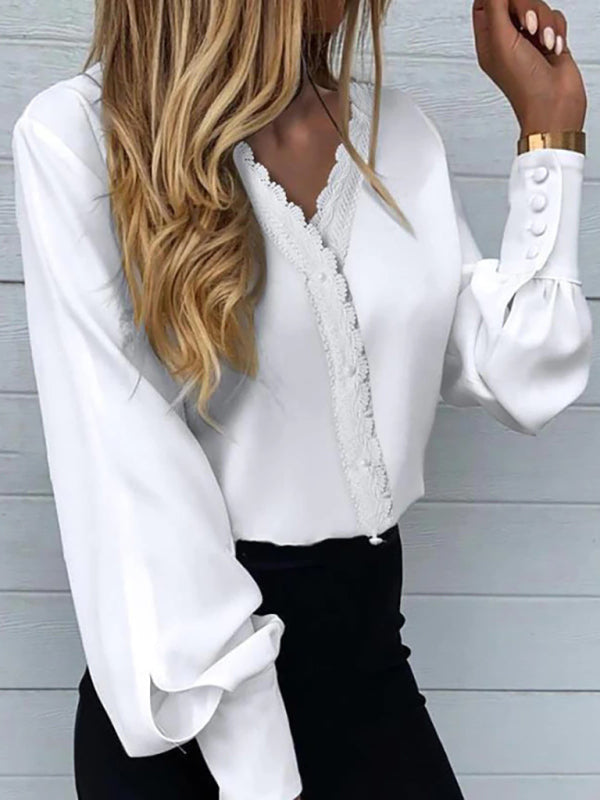 Women's Printed Lace Long Sleeve Top - White / S está agotado y se enviará tan pronto como vuelva a estar disponible.
