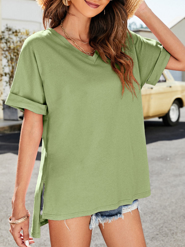 Women's Solid Color V-neck Shirt Top - Pink / S está agotado y se enviará tan pronto como vuelva a estar disponible.