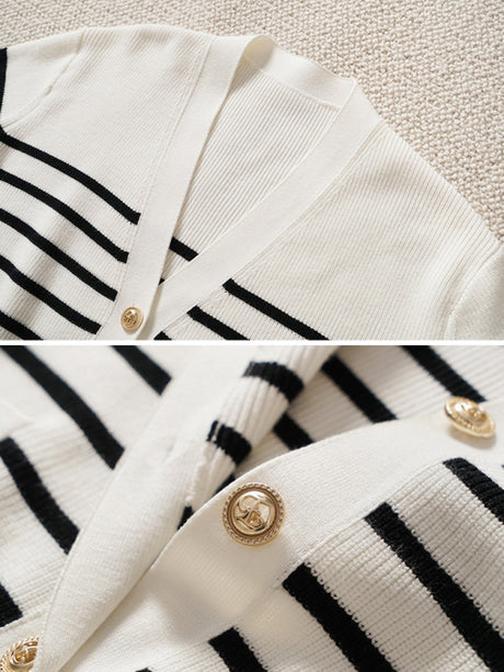 $29.34 USDPrecio unitario /AgotadoWomen's Funky Striped Textured Button Up Cardigan With Ribbed Hem