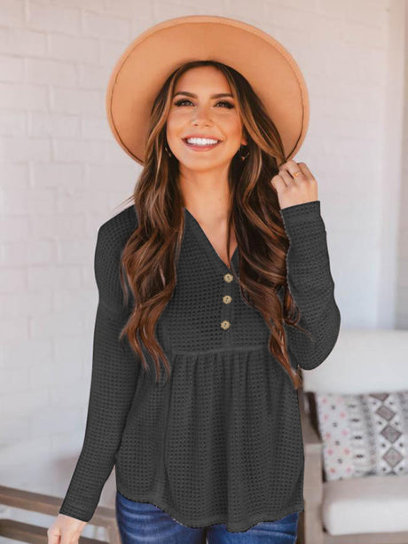 $22.53 USDPrecio unitario /AgotadoWomen's new simple solid color pull-sleeve V-neck button lapel shirt