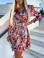 Fashionable new print waist V-neck long-sleeved dress - Pattern1 / S está agotado y se enviará tan pronto como vuelva a estar disponible.