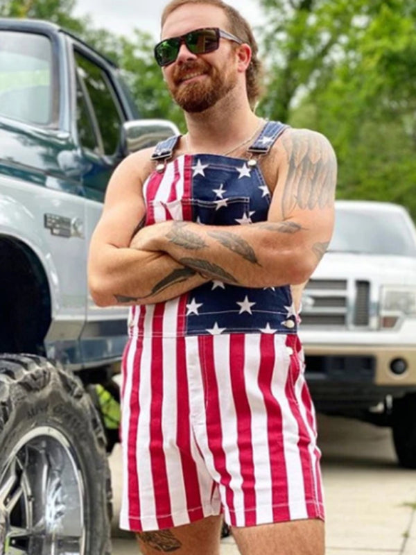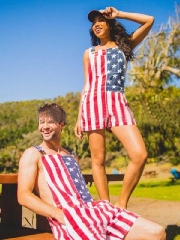 Unisex American Flag Graphic Print Denim Overall Shirt Jeans