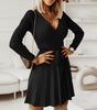 Women’s Long Sleeve Ribbed V Neck Mini Dress With Pleated Skirt Bottom