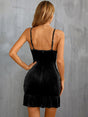 Women’s Velvet Ruffled Hem Sweetheart Neckline Mini Dress With Decorative Buttons