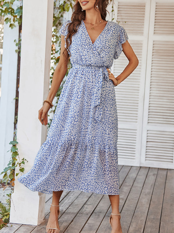 Women's Printed Flutter Sleeve Tiered Chiffon Maxi Dress - Blue / S está agotado y se enviará tan pronto como vuelva a estar disponible.