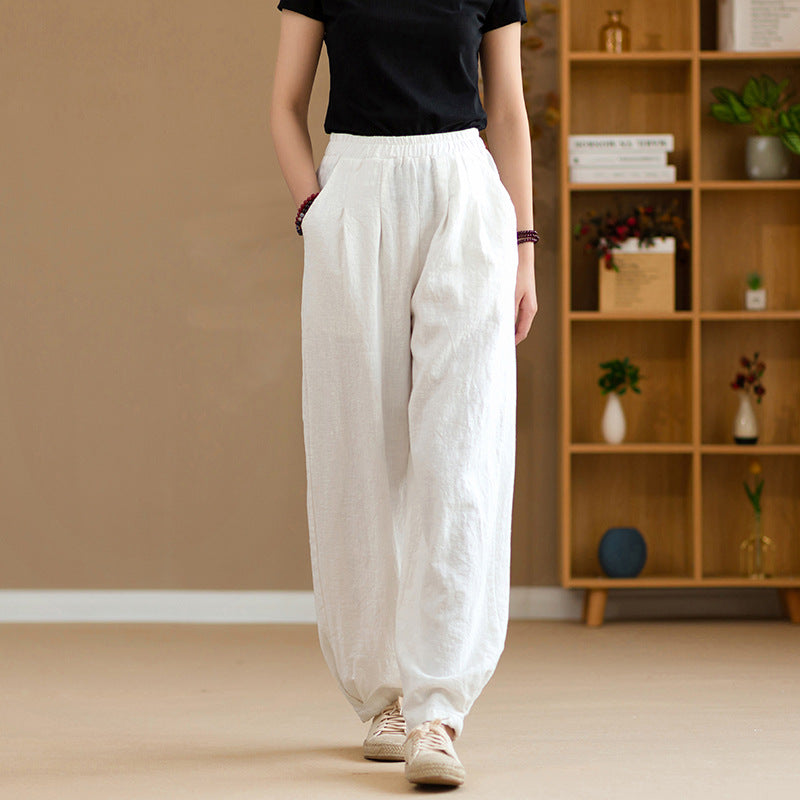 Cotton Linen Women Clothing Spring Summer Artistic Stone Washed Loose Cotton Linen Slimming Trousers Ladies Linen - S / White is backordered and will ship as soon as it is back in stock.