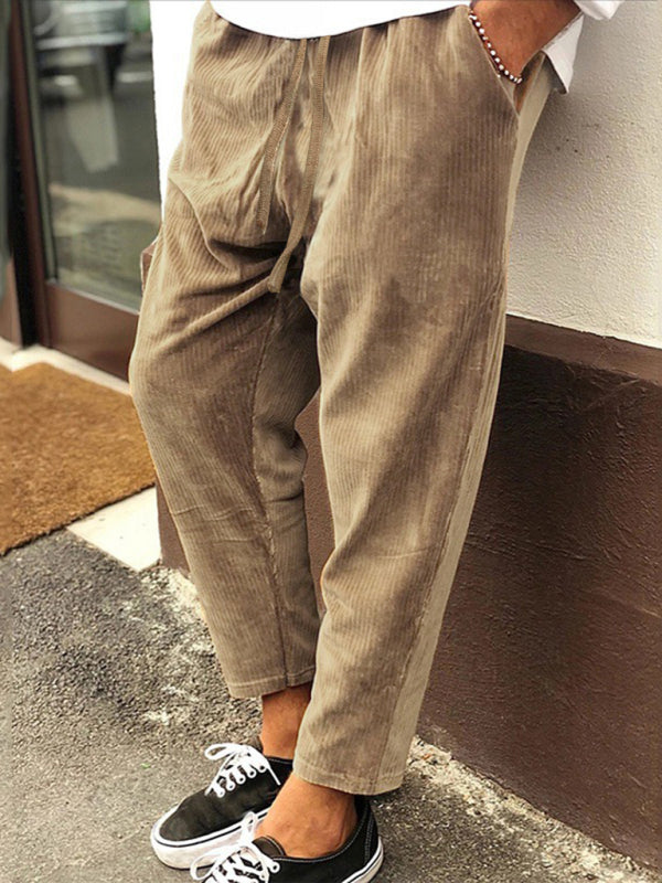 Men's Solid Color Crop Straight Leg Corduroy Pants