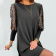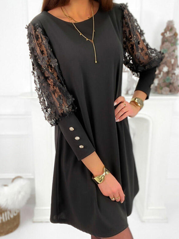 Women's solid Color Casual Lace Sleeve Dress - Black / S is backordered and will ship as soon as it is back in stock.