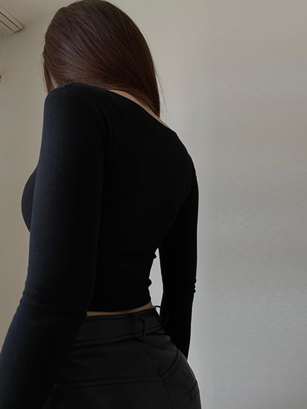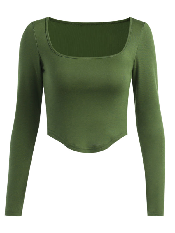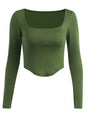 Women's Solid Color Long Sleeve Square Neckline Cropped Top