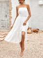Women's Solid Color Strapless Taffeta Bubble-hem Lace Midi Dress