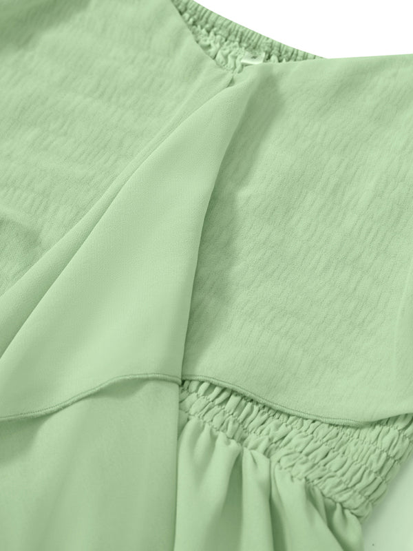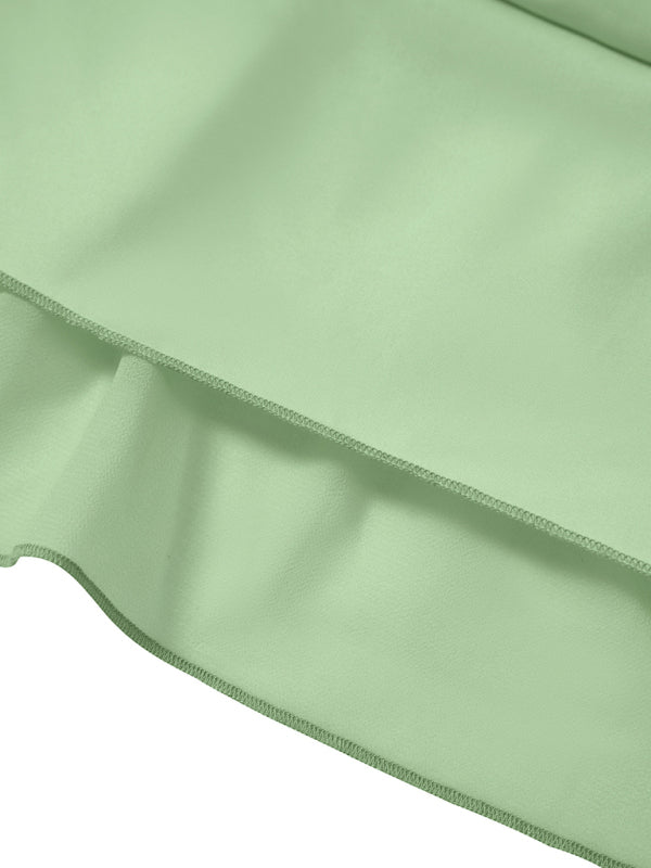 Women's spring and summer V-neck solid color waist short-sleeved dress - Green / S is backordered and will ship as soon as it is back in stock.